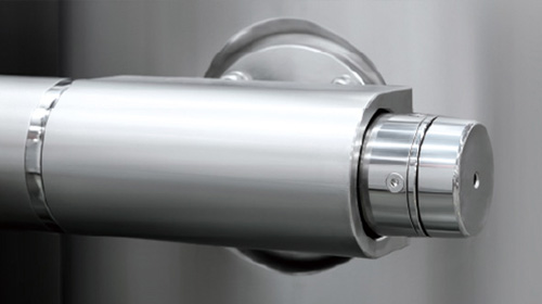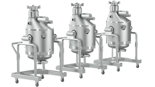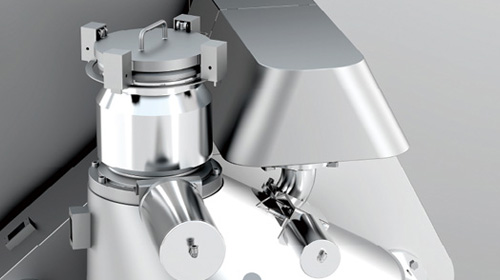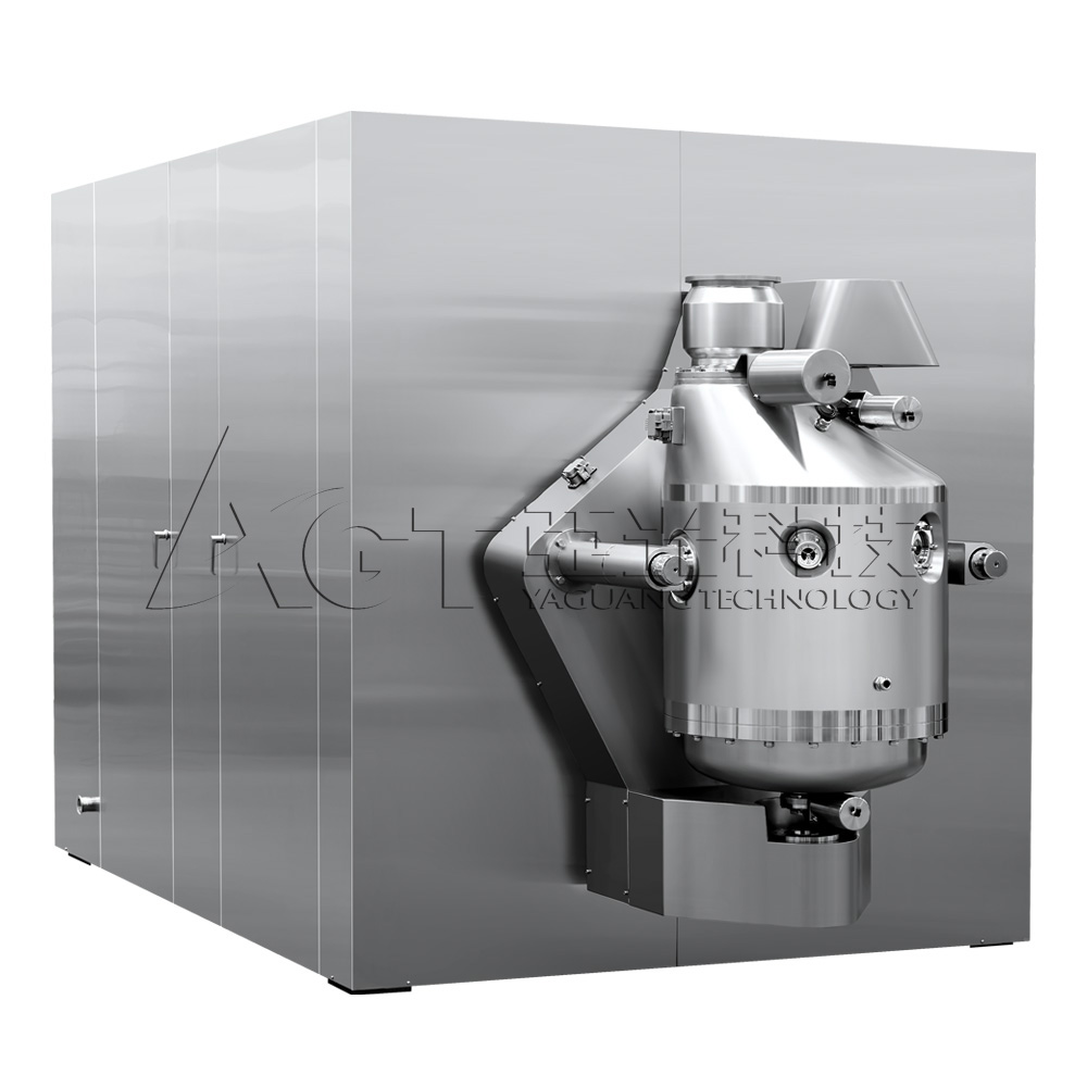 自動密閉出料裝置 俗稱"象鼻子出料裝置",能夠有效避免膠塞出料時與外界接觸造成污染; 出料系統(tǒng)可進行CIP和